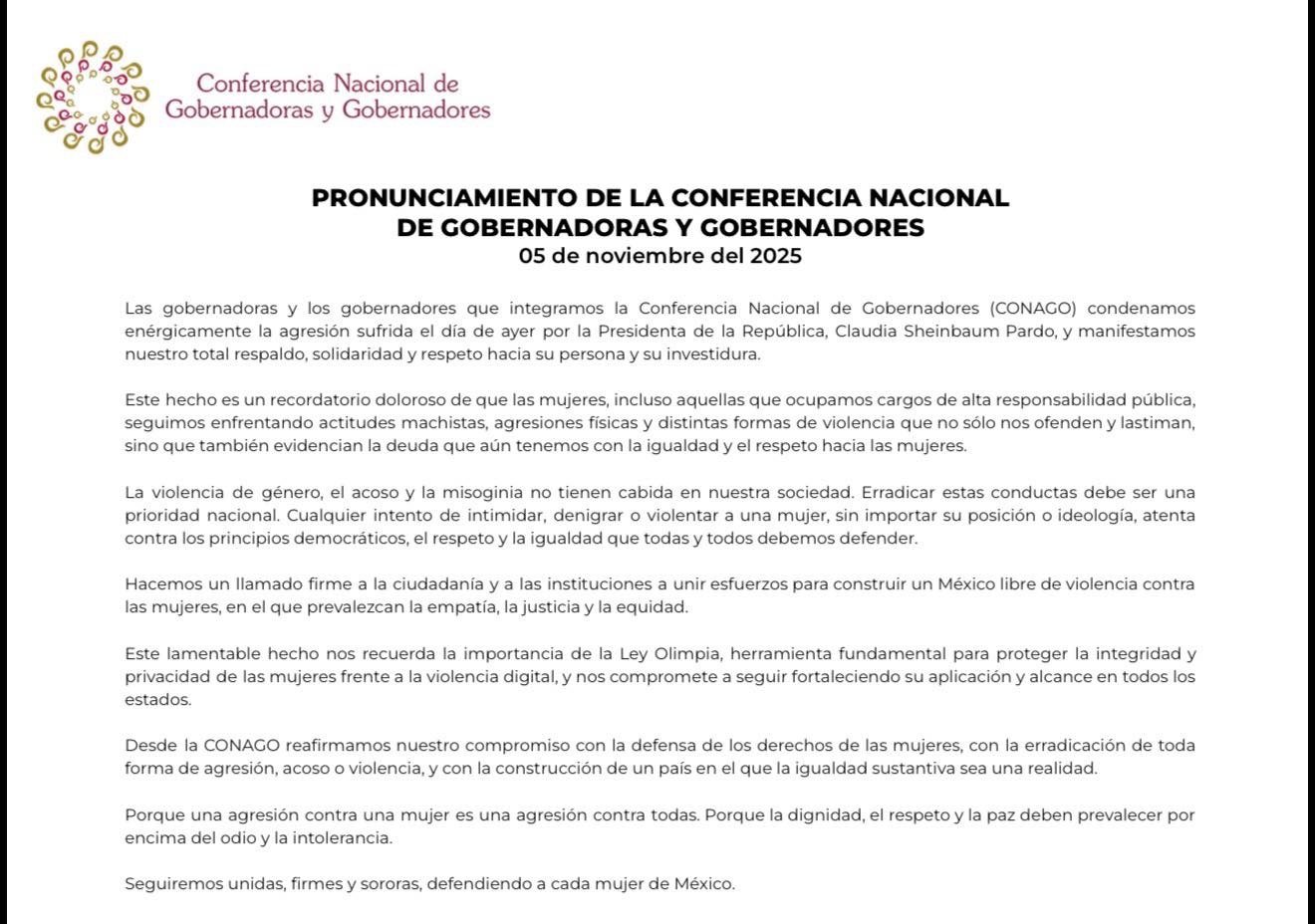 November 5, 2025Gabriela SolisNoticias,Seguridad,Tapachula#CONAGO,#seguridadLa Conferencia Nacional de Gobernadores CONAGO condena cualquier agresión a...