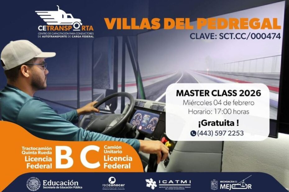 • Se llevará a cabo el 4 de febrero; pueden participar personas mayores de 18 años *Morelia, Michoacán, 2 de febrero de 2026.-* El Instituto… Read More »Icatmi ofrece clase muestra gratuita en simulador de tractocamión en Villas del Pedregal