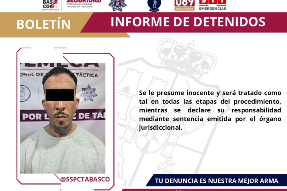 Elementos de la Secretaría de Seguridad y Protección Ciudadana (SSPC), en coordinación con la Fuerza Interinstitucional de Reacción Táctica (FIRT) Olmeca, detuvieron a dos personas… Read More »Detienen a dos personas en Centro por presuntos delitos contra la salud y robo de vehículo