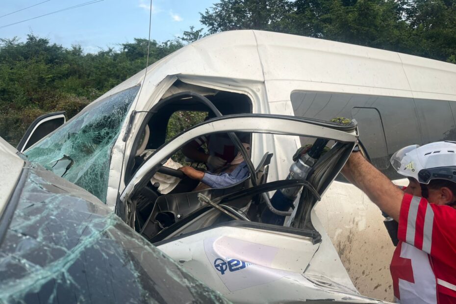 3 muertos y 14 lesionados tras choque frontal de combis, en Lázaro Cárdenas