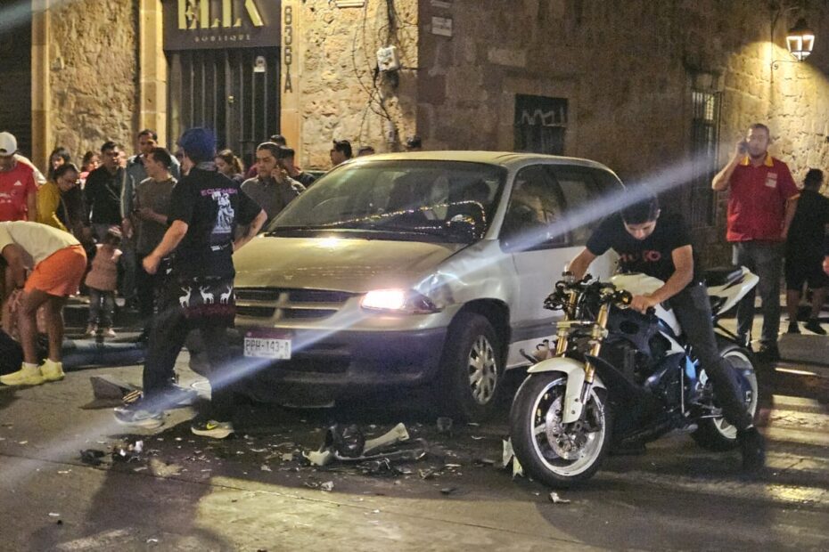 Se registra choque entre moto y camioneta en el Centro Histórico de Morelia