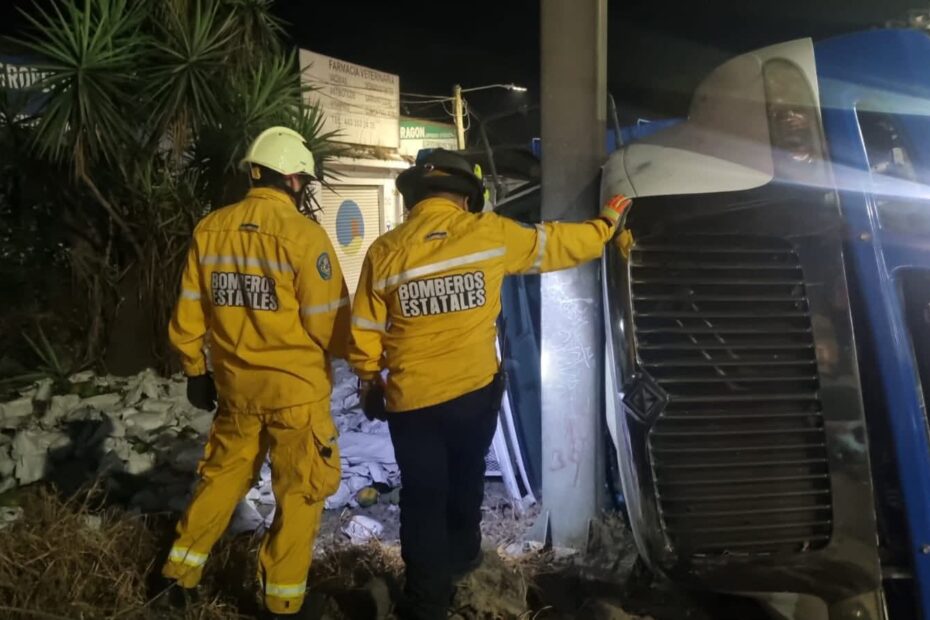 Volcadura de camión torton deja un herido en Calzada La Huerta, salida Pátzcuaro