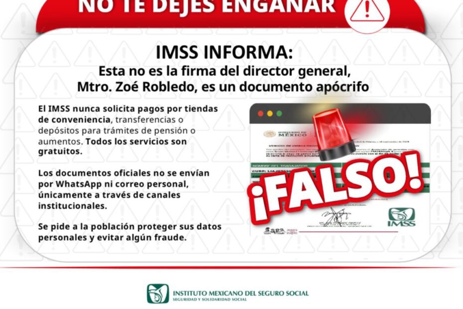El instituto mexicano del seguro social (IMSS) lanzó una alerta a la población para evitar caer en fraudes por información falsa, esto luego de que… Read More »Alerta IMSS por fraude con trámites para pagos de pensión