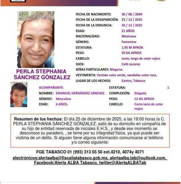 Desde el 25 de diciembre se desconoce el paradero del niño Emmanuel “N” de 6 años de edad y de una bebé de menos de… Read More »PADRE DE FAMILIA DEL MUNICIPIO DE CENTRO PIDE A LA FGE AGILIZAR LOS PROCESOS PARA DAR CON EL PARADERO DE SU ESPOSA E HIJOS