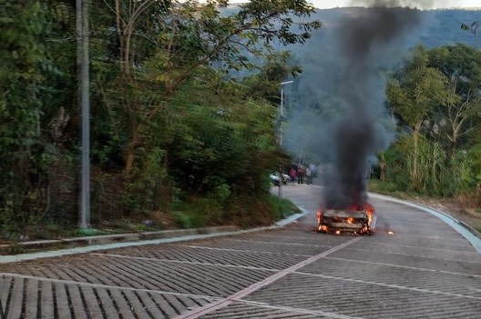 Presunto corto circuito provoca incendio de vehículo en Tila