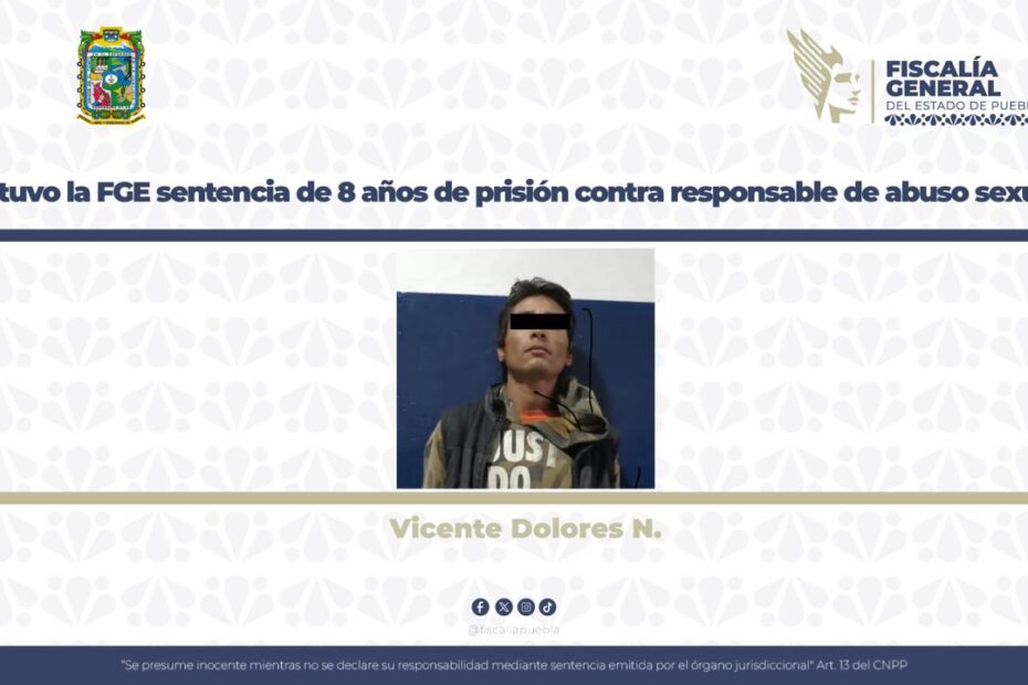 Obtuvo la FGE sentencia de 8 años de prisión contra responsable de abuso sexual