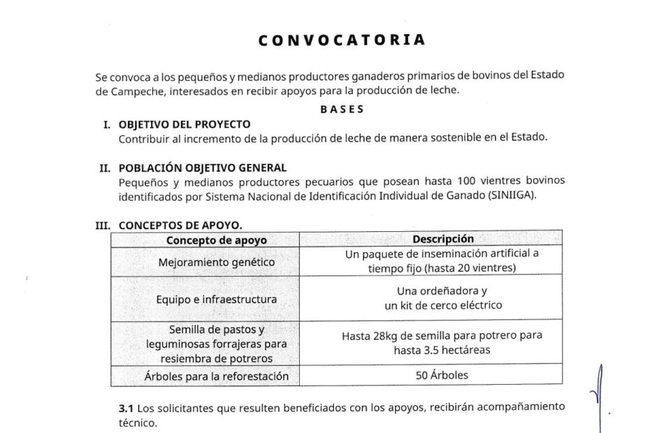 EMITEN CONVOCATORIA PARA EL FORTALECIMIENTO DE LA PRODUCTIVIDAD PECUARIA.