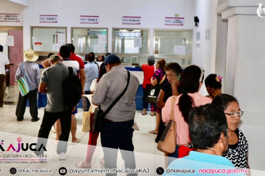 Este viernes, decenas de ciudadanas y ciudadanos acudieron al Ayuntamiento de Nacajuca para cumplir puntualmente con el pago del impuesto predial, demostrando una vez más… Read More »Ciudadanía cumplida impulsa el desarrollo de Nacajuca