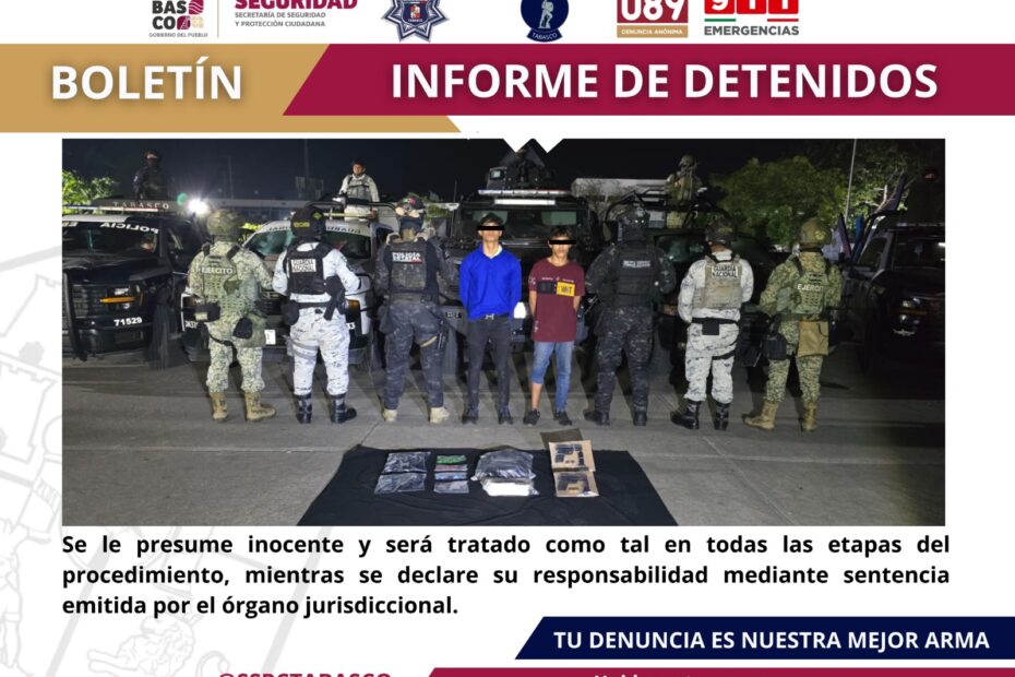 SSPC y FIRT Olmeca detienen a dos jóvenes armados con droga en Gaviotas Norte