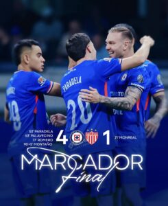 Agustín Palavecino amplió la ventaja y, aunque Necaxa recortó distancias desde el punto penal, Cruz Azul respondió de inmediato con un golazo de Luka Romero tras un tiro libre, en una jugada que además dejó a los Rayos con un hombre menos. Andrés Montaño puso cifras definitivas para cerrar una actuación contundente.