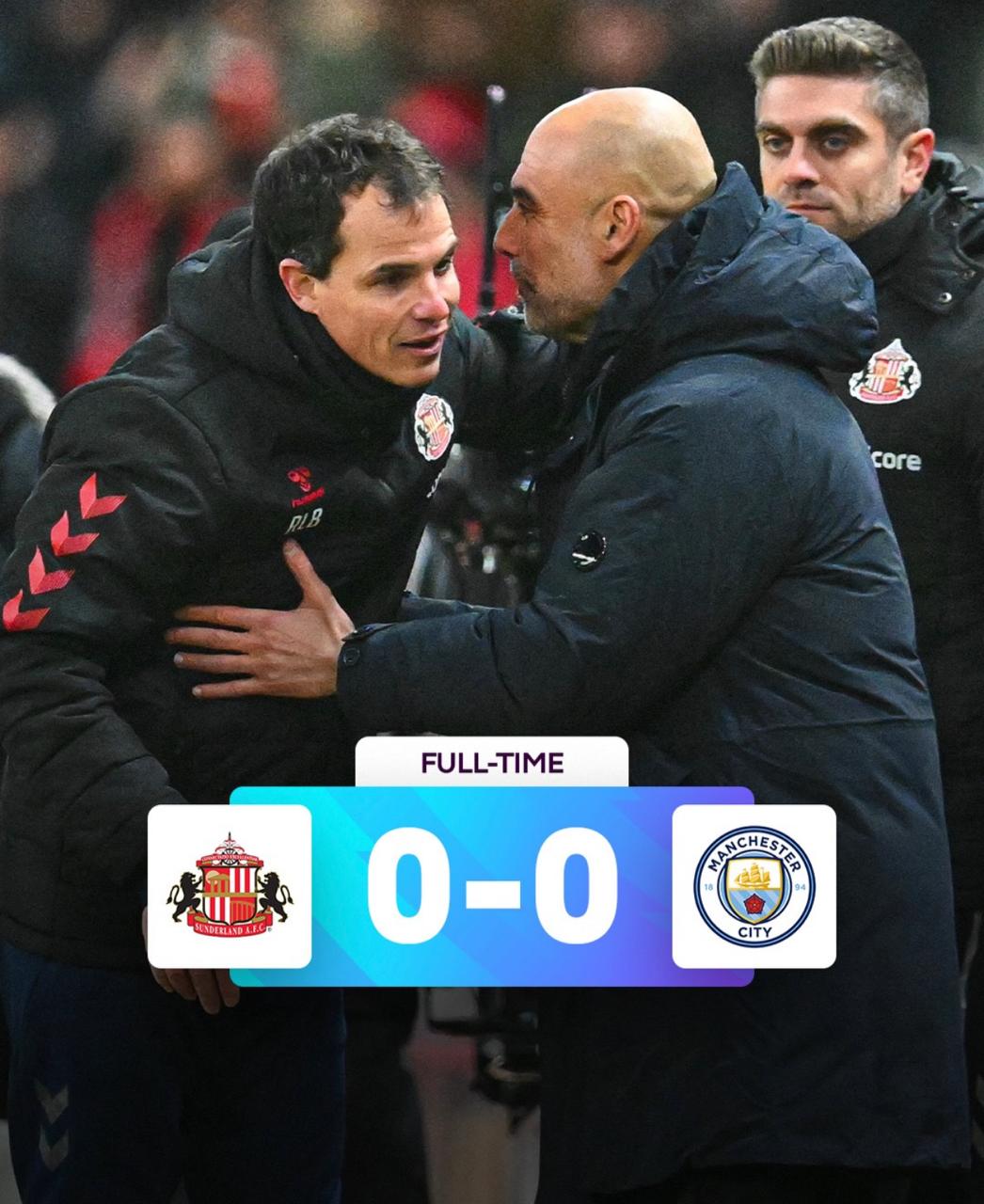 El Manchester City empató 0-0 ante el Sunderland en el Estadio de la Luz, resultado que permite al Arsenal escaparse a cuatro puntos en la cima de la Premier. El equipo de Pep Guardiola sufrió la anulación de un gol de Bernardo Silva por fuera de juego apenas al minuto 6 y se estrelló repetidamente contra la figura del arquero Robin Roefs.