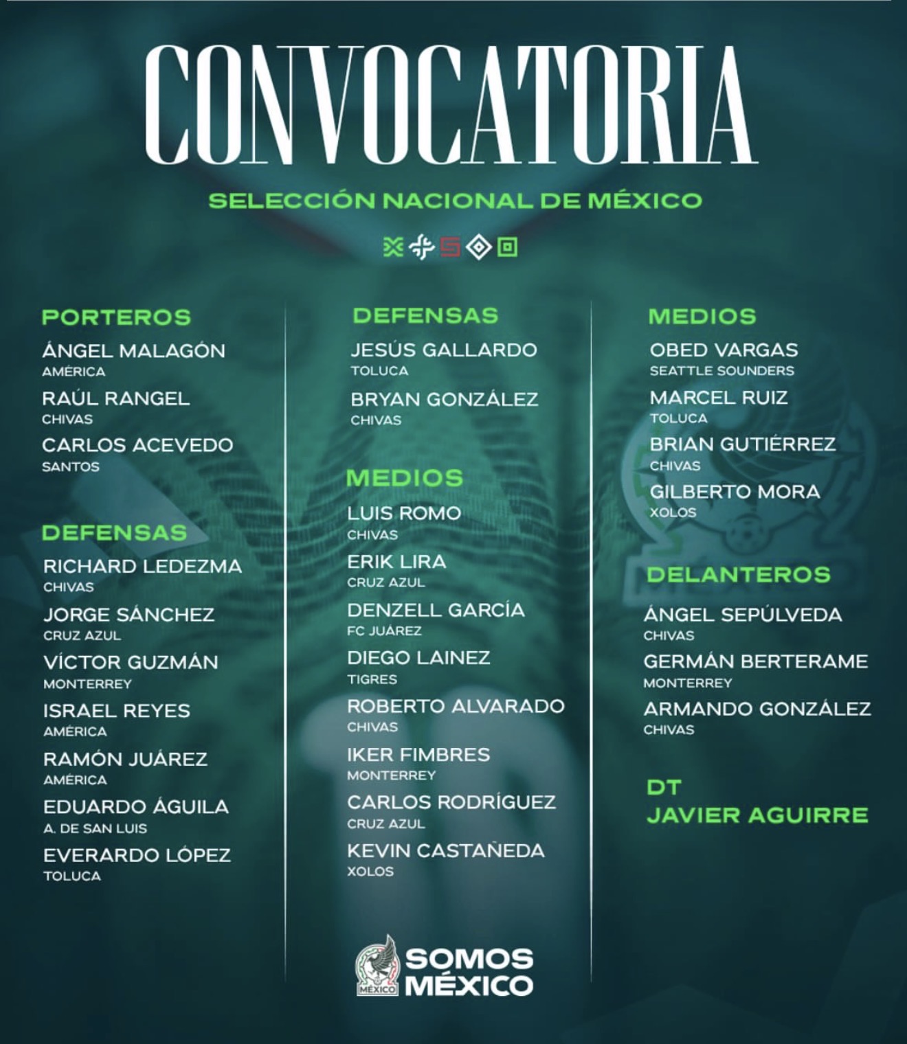 Alexis Vega quedó fuera por una operación que lo mantendrá inactivo varias semanas. México enfrentará ambos partidos como visitante, una solicitud expresa de Aguirre para exponer al equipo a entornos exigentes. El duelo ante Panamá será en Ciudad de Panamá y posteriormente viajarán a Santa Cruz, Bolivia. Además, el Tri recibirá a Islandia el 25 de febrero en Querétaro como parte del mismo proceso.