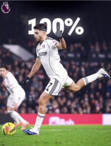Con esa anotación, superó la marca de Yaya Touré, quien había convertido 11 penales sin error. Jiménez mantiene una efectividad perfecta en penales dentro del futbol inglés, con cinco anotaciones desde el punto penal con Fulham y siete más con Wolverhampton, consolidándose como uno de los cobradores más confiables del torneo. Además, el atacante llegó a 100 partidos disputados con la camiseta del Fulham, reafirmando su regularidad y vigencia en la Premier League, mientras continúa sumando cifras históricas en una de las ligas más competitivas del mundo.