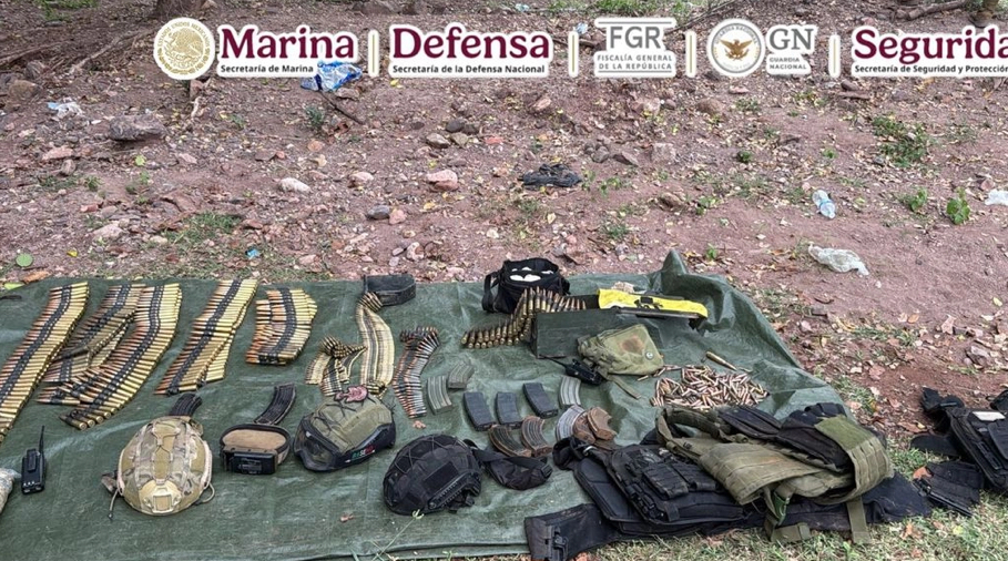 Durante los despliegues, fueron aseguradas tres armas largas, mil 770 cartuchos de diferentes calibres, 37 cargadores, un paquete con mariguana, un paquete con cocaína, cuatro camionetas con blindaje artesanal —una de ellas con emblemas falsos del Ejército Mexicano—, 42 artefactos explosivos improvisados, dos radios, seis chalecos con placas, cuatro cascos y ropa táctica.