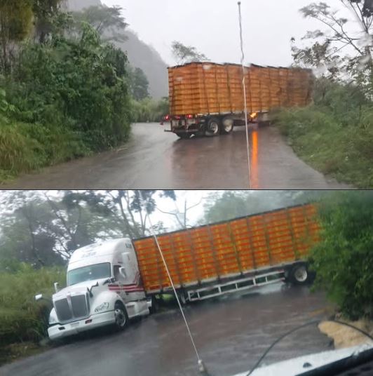 El incid3nte ocurrió cuando el conductor circulaba por un tramo de curvas pronunciadas bajo ligera llovizna, lo que dejó la carpeta asfáltica resbaladiza. La combinación de la humedad y las maniobras del vehículo provocó que el camión derrapara y quedara parcialmente fuera de la vía, alojándose en una cuneta lateral.