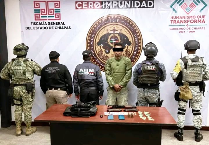 Una acción coordinada entre instituciones federales y estatales produjo la detención de un individuo por delitos relacionados con drogas y posesión ilegal de arma de fuego en el municipio de Cintalapa.