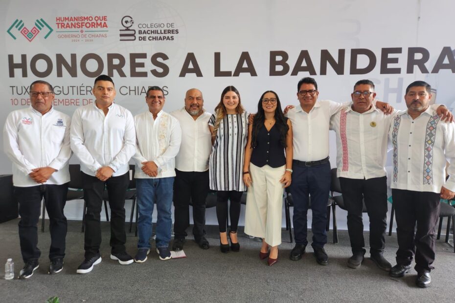 Con el respaldo de autoridades estatales y junto a la comunidad estudiantil, personal docente y administrativo de planteles, coordinaciones de zona y oficinas centrales, la directora general del Colegio de Bachilleres de Chiapas (Cobach), Viridiana Figueroa García, encabezó este lunes la ceremonia de honores a la bandera, donde reiteró el compromiso institucional de trabajar en esta Nueva ERA educativa con transparencia, honestidad y sentido de compromiso, bajo la directriz del gobernador Eduardo Ramírez Aguilar.
