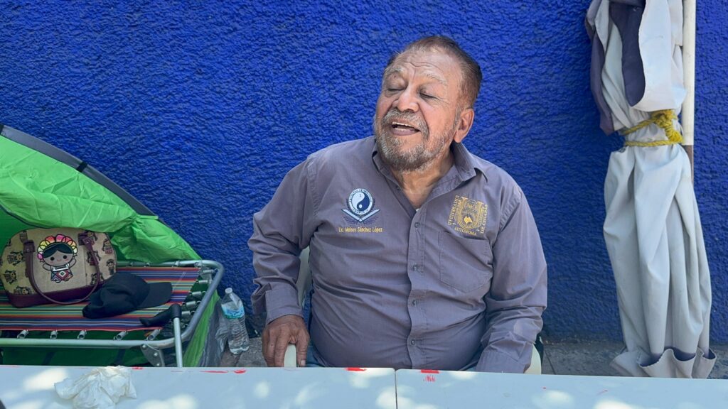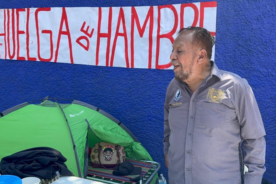 El maestro Moisés Sánchez López, economista y docente Universidad Autónoma de Chiapas UNACH, inició una huelga de hambre afuera de la facultad de la Administración de Negocios en Tapachula, para exigir el pago de su pensión justo.