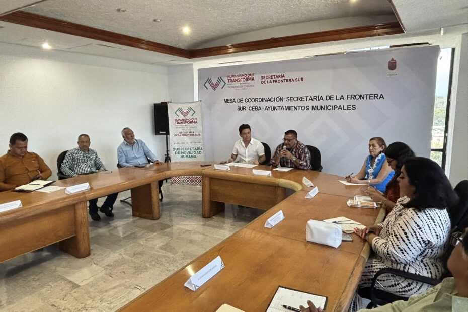 Como parte de las acciones para fortalecer el acceso a la educación y la coordinación institucional, la Secretaría de la Frontera Sur, encabezada por María Amalia Toriello Elorza, a través de la Subsecretaría de Movilidad Humana a cargo de Eduardo Antonio Castillejos, llevó a cabo una reunión con directivos del Centro de Educación Básica para Adultos (CEBA) y representantes de los Ayuntamientos de Tapachula, Tuxtla Chico, Cacahoatán y Huixtla.