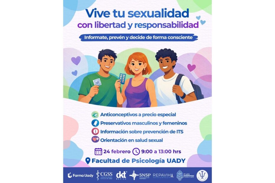 Como parte de estas acciones, el próximo 24 de febrero se realizará un ciclo de pláticas informativas en el auditorio de la Facultad de Psicología de la UADY, abierto a la comunidad universitaria y al público en general. Durante la jornada se abordarán temas como la toma de decisiones informadas en sexualidad, VIH desde una perspectiva de realidad y resiliencia, infecciones de transmisión sexual y la charla “Mitos y realidades del uso del preservativo: placer y prevención”, orientada a derribar creencias erróneas sobre su uso.