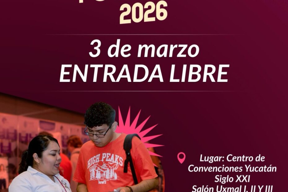 Con más de 500 planes de estudio de 60 universidades y centros de investigación, el Gobierno del Estado realizará la Feria de Posgrados 2026 el próximo 3 de marzo en el Centro de Convenciones Yucatán Siglo XXI, donde durante once horas se concentrará la oferta académica regional, nacional e internacional.