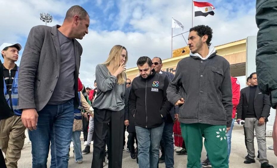 En imágenes difundidas en redes sociales se observa a la actriz conversando con autoridades locales, integrantes de la Cruz Roja y de la Media Luna Roja, así como con conductores de camiones que transportan alimentos, combustible y suministros médicos hacia Gaza.