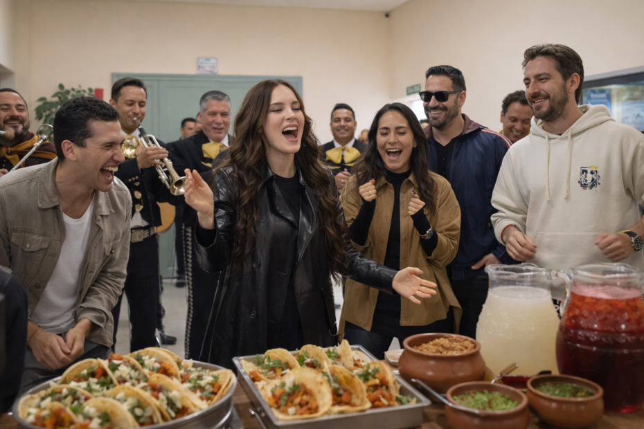 La famosa cantante Belinda durante su etapa de grabación en España de la serie Carlota la última emperatriz, reunió a todo el equipo de trabajo de producción para darles unas palabras donde les agradeció a todos por cuidarlos por ser tan cariñosos, estar al pendiente de ellos y les llevó mariachi, aprovechó para interpretar “como quien pierde una estrella” de Alejandro Fernández, también cantaron la del mono de alambre, no solo eso, adicional les llevó tacos, con esto demuestra el gran cariño que tiene por la cultura mexicana.