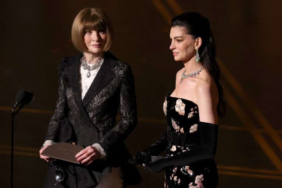 Anne Hathaway y Anna Wintour presentan en los Oscar