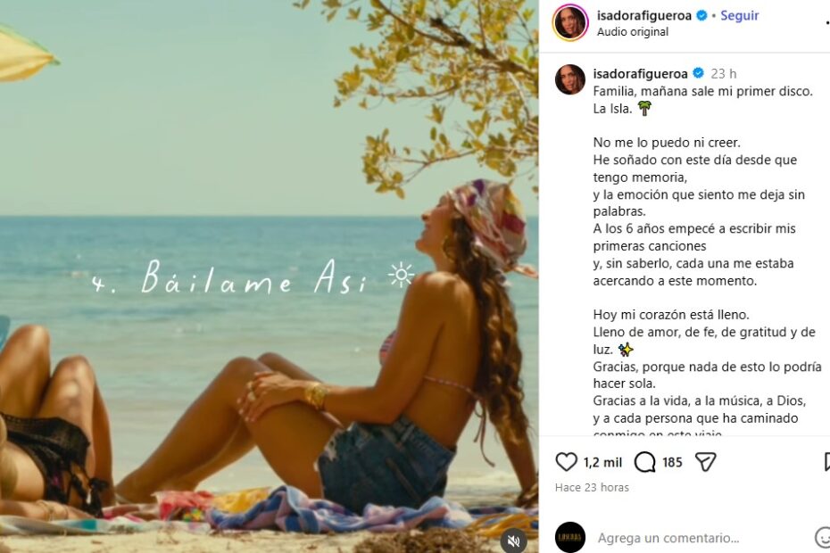 Isadora Sofía Figueroa, hija del cantante puertorriqueño Chayanne, asegura que está viviendo “el sueño” de su vida con el lanzamiento de su primer disco ‘La Isla’, disponible desde este jueves.