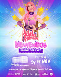 Luli pampin regresa a la Ciudad de puebla para presentar su nuevo show “El Libro Musical” en este show podremos disfrutar las canciones favoritas de los consentidos de la casa acompañadas de una gran producción, no te lo puedes perder!!!