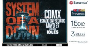 Tras el rotundo éxito de su gira por estadios de la Unión Americana y más de de 500 mil boletos vendidos en América Latina, los ganadores del premio GRAMMY®, System Of A Down, han anunciado su esperado regreso a la Ciudad de México el próximo 27 de mayo de 2026.