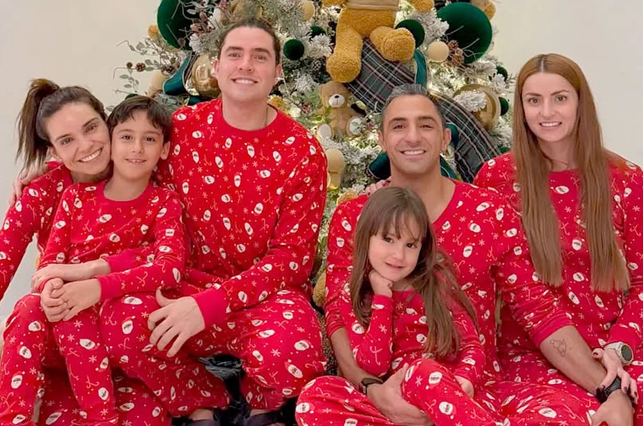 En las imágenes compartidas por Tania se le ve posando con sus hijos, Patricio y Amelia, abrazados a su mamá mientras a su alrededor aparecen su actual novio, el productor Pedro Pereyra, su exesposo Daniel Pérez y la nueva pareja de éste, Alejandra Márquez. Todos lucen coordinados en looks cómodos y en evidente mood navideño.
