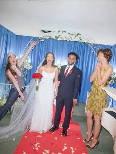 La actriz Zendaya reconocida por sus papeles de Mary Jane en el hombre Araña, sorprendió a un grupo de personas que estaban celebrando el matrimonio de una pareja que justo se estaban casando en una capilla en las Vegas, como a muchas parejas les gusta casarse, pues vaya sorpresa se llevaron, ya que la actriz entró con mucha discreción por lo que los testigos estaban emocionados, momentos después los ya esposos fueron a saludarla y a aprovechar para tomarse fotos con ella, de esta forma les dio un buen recuerdo de bodas.