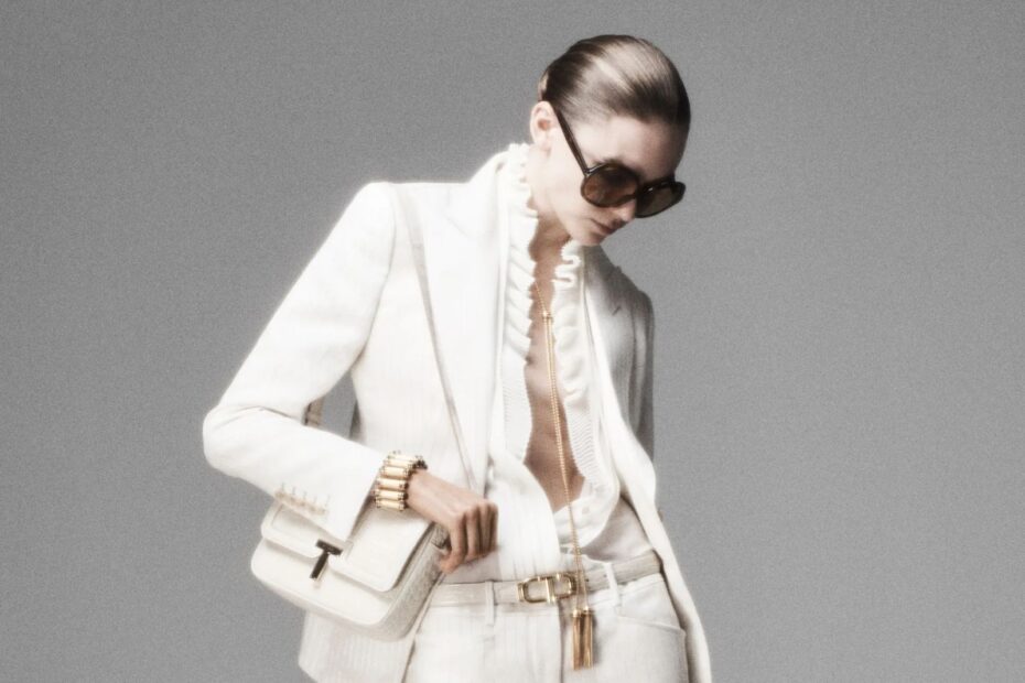 Comenzamos con Tom Ford; la firma neoyorquina enseñó cómo llevar los pantalones en tendencia de Otoño-Invierno 2025, esta vez en un color blanco puro que sobresale a kilómetros de distancia. La idea es apostar por pantalones puddle afilados que favorecen la silueta y la estilizan con elegancia natural, un diseño con personalidad para crear estilismos retro o inspirados en la moda de los años 70. Formuló el traje perfecto con un blazer de hombros poderosos a tono y selló el atuendo con una blusa violeta, cinturón delgado y zapatos pumps de charol.