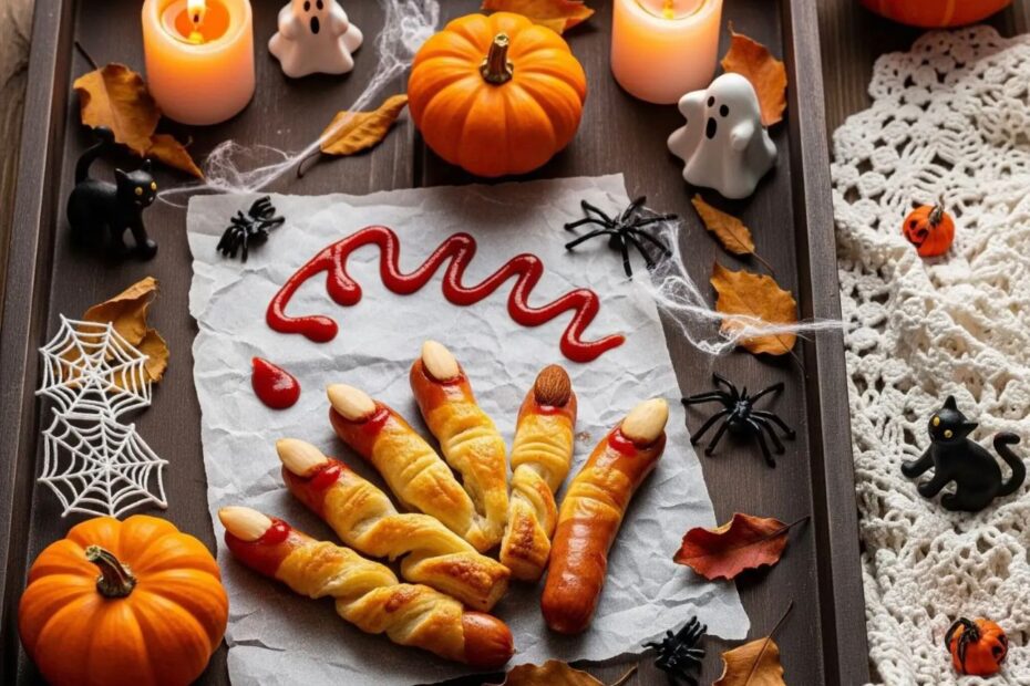 Para un efecto adicional, acompaña los dedos de bruja con una salsa dip que simule “sangre”, como salsa de tomate. También puedes usar un plato con hielo seco para crear un efecto humeante al presentar la botana.