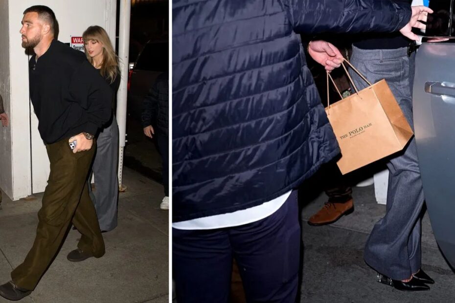 Travis Kelce, fotografiado mano a mano con la estrella del pop, mantuvo un ritmo sartorial similar. El jugador de fútbol americano lució un suéter negro y unos pantalones de traje de lana verde caqui, así como unos tenis negros, sobre las que se superponían dos delicadas cadenas doradas y plateadas de Louis Vuitton. Sus atuendos coordinados, de prometido a prometida, encajaban con las viejas vibras americanas del Polo Bar, propiedad de Ralph Lauren.