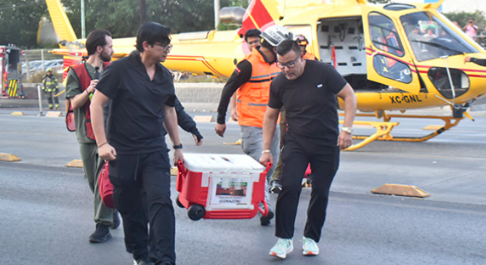 A su llegada al Aeropuerto Internacional “General Mariano Escobedo”, personal de Protección Civil implementó un operativo especial para agilizar el traslado del órgano hasta el Hospital de Cardiología No. 34, ubicado en la avenida Lincoln.