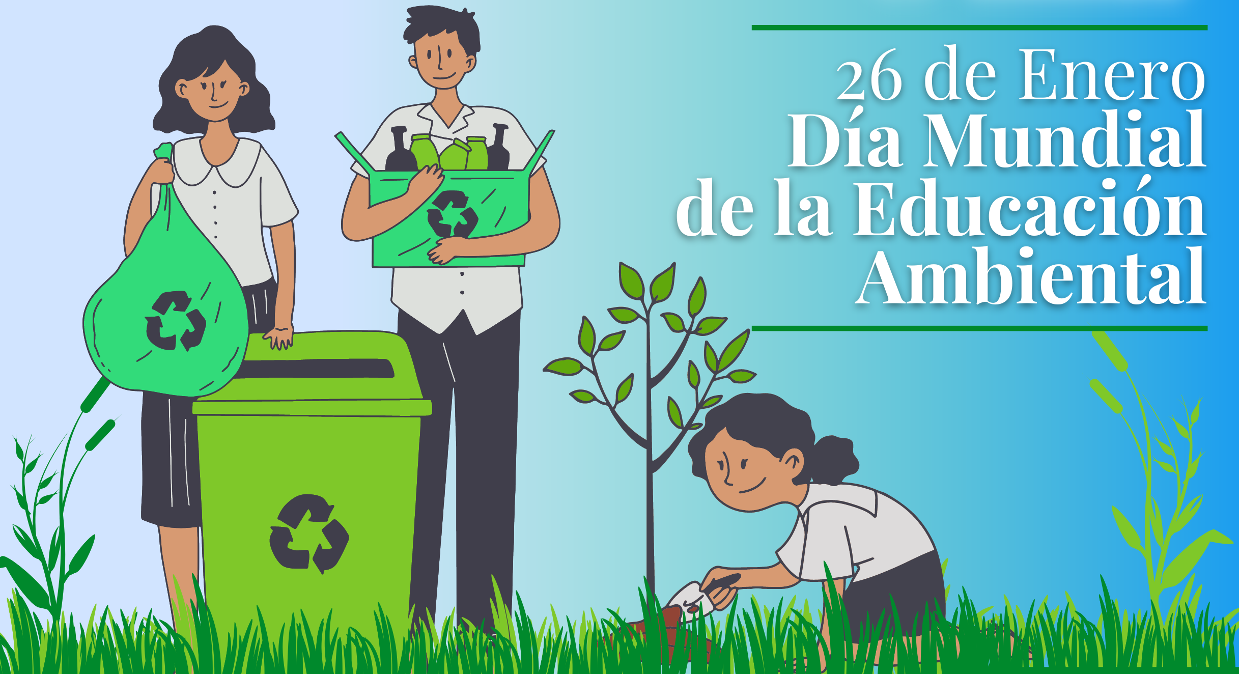 El 26 de enero se celebra el Día Mundial de la Educación Ambiental, con la finalidad de concienciar a las personas acerca de la importancia de preservar y proteger el medio ambiente, así como incentivar su participación en las iniciativas que se están llevando a cabo a nivel mundial, para su conservación.