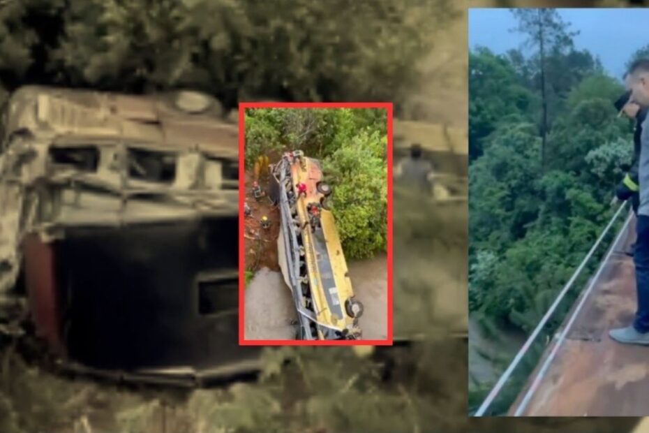 Autobús de dos pisos lleno de pasajeros se va al vacío desde puente, hay varios muertos