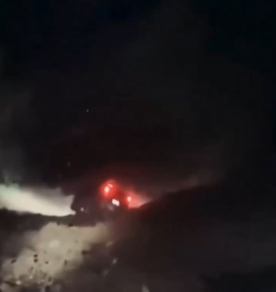 En la grabación captada por testigos se puede ver como el vehículo se sale de la vía y termina cayendo dando vueltas violentamente durante varios metros hasta que finalmente se detiene cuando se pierde entre la oscuridad del fondo del barranco.