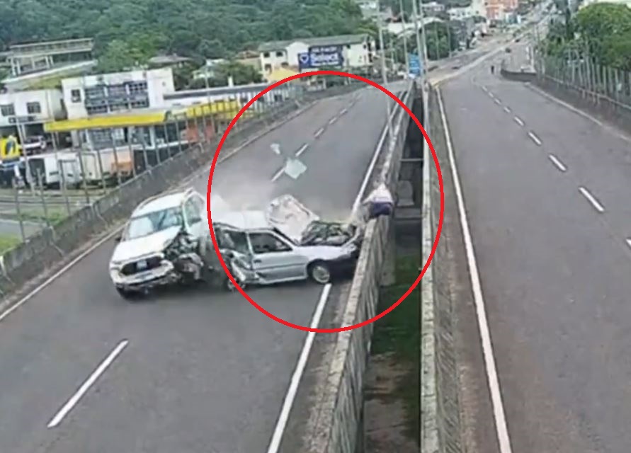 Tras impactar al coche averiado en Rio Grande do Sul, éste lanzó al hombre, quien primero sufrió un duro golpe contra las estructuras de concreto del lado contrario, para después caer al vacío.