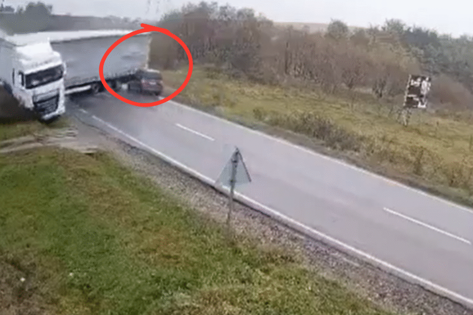 En la Red se divulgó un video en el que un camión se volcó en una carretera mojada por la lluvia, perdió el control y aplastó a otro vehículo con dos personas dentro. Según medios, el accidente ocurrido en Rumanía resultó ser mortal; el conductor del automóvil y su pasajero fallecieron debido al impacto. Al conductor del camión se le realizó una prueba de alcoholemia y no se detectó nada en su organismo.