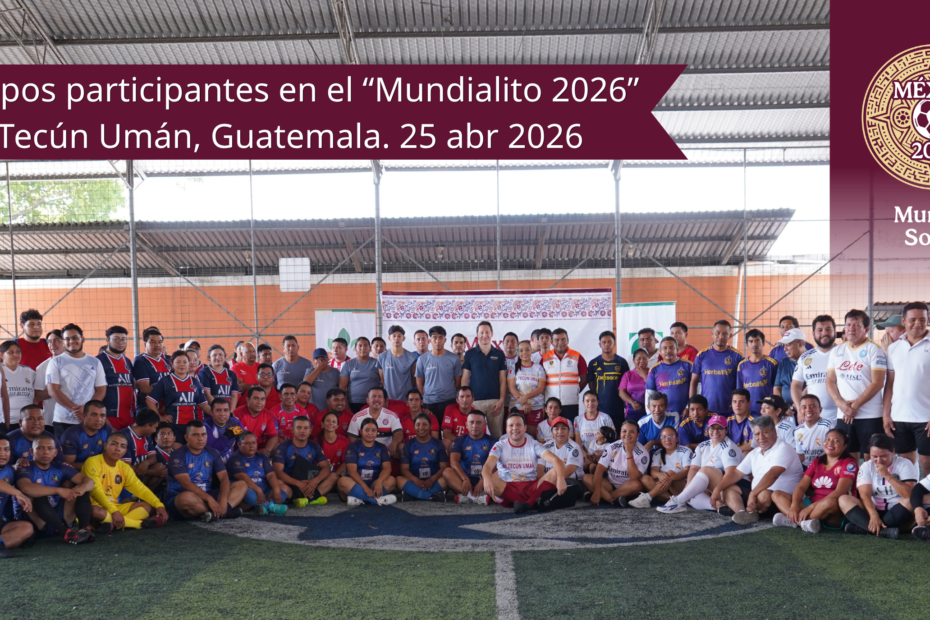 Al respecto, el Cónsul de México en Tecún Umán, José Luis Alvarado Valenzuela, señaló que: “El deporte es una herramienta poderosa para construir comunidad, fortalecer valores y generar espacios de encuentro. Con el Mundialito 2026 buscamos, desde la frontera sur, sumar a esta visión de un Mundial con sentido social, donde lo más importante no es la competencia, sino la convivencia, la inclusión y el bienestar de todos y