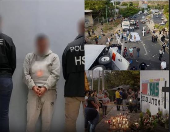 El asegurado es señalado de tráfico de personas, concretamente por la muerte de más de 50 personas en un accidente el 09 diciembre del 2021, el incidente se registró entre los municipios de Chiapa de Corzo y Tuxtla Gutiérrez, donde volcó un tráiler que transportaba migrantes, dejando 56 muertos y decenas de heridos.” Cargos por conspiración para traer un extranjero al país, poniendo en peligro la vida, causando lesiones corporales graves y resultando en muerte del mismo”, dio a conocer la dependencia que lo detuvo.