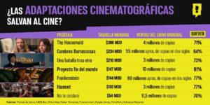 Hoy por hoy, a pesar de que las adaptaciones siguen siendo una apuesta peligrosa, de acuerdo a un análisis de la plataforma de entretenimiento Spoiler, es cada vez es más común ver novelas literarias llegar a los cines, y ya sea por el morbo de ver si sus directores pasan o no la prueba, o por la elección del cast, el público sigue interesado en ver el resultado de este experimento.