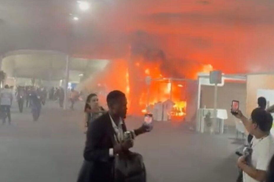El incendio se reportó en el pabellón de salud y ciencia en el penúltimo día programado de la conferencia, el 30ª Conferencia de las Partes de la Convención Marco de las Naciones Unidas sobre el Cambio Climático, indicaron Victoria Martins y Júlia Aguiar, personal técnico del evento.