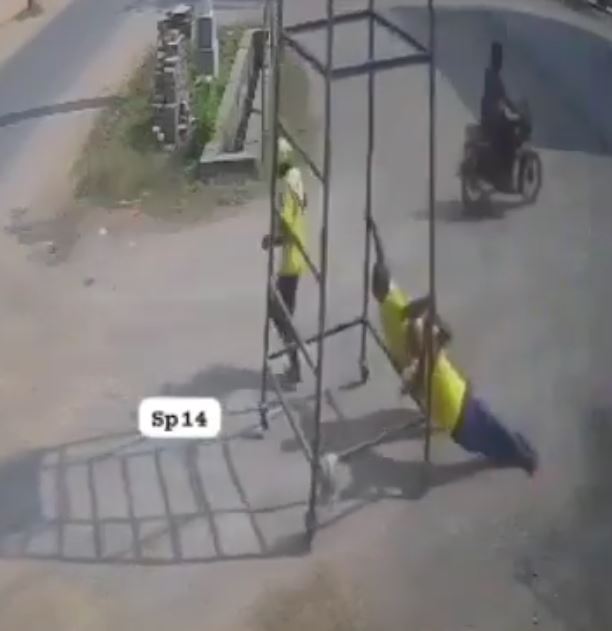 En el video que circula en plataformas digitales se puede apreciar que un grupo de tres trabajadores en la India, se encontraban moviendo un andamio metálico, el cual, pretendían llevar hasta el otro lado de una calle para realizar sus labores del día, sin embargo, no se percataron de dicha estructura era tan alta como los cables de alta tensión de la infraestructura urbana por lo que terminaron tocándolos y de forma inmediata dos de los tres trabajadores recibieron una poderosa descarga eléctrica que les quitó la vida de forma inmediata, cabe mencionar, que el tercer trabajador se salvó casi de forma milagrosa de correr el mismo destino que sus compañeros.