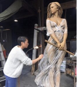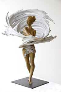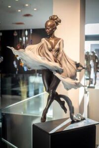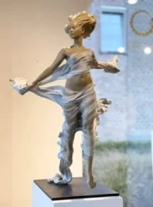 Sus figuras de bronce, inspiradas en el arte clásico del Renacimiento, parecen desafiar el tiempo, capturando la belleza y el movimiento con una delicadeza asombrosa.