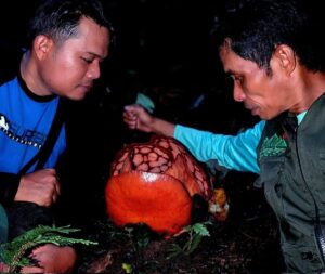 La Rafflesia hasseltii, una especie parásita nativa de Sumatra (Indonesia), vive oculta en las raíces de una enredadera tropical y solo emerge para florecer durante un corto y esquivo periodo.