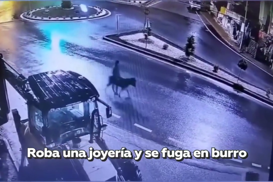 Tras cometer el robo, el individuo escapó del lugar montando un burro, lo que llamó la atención de autoridades y usuarios en redes sociales una vez que el video se viralizó.